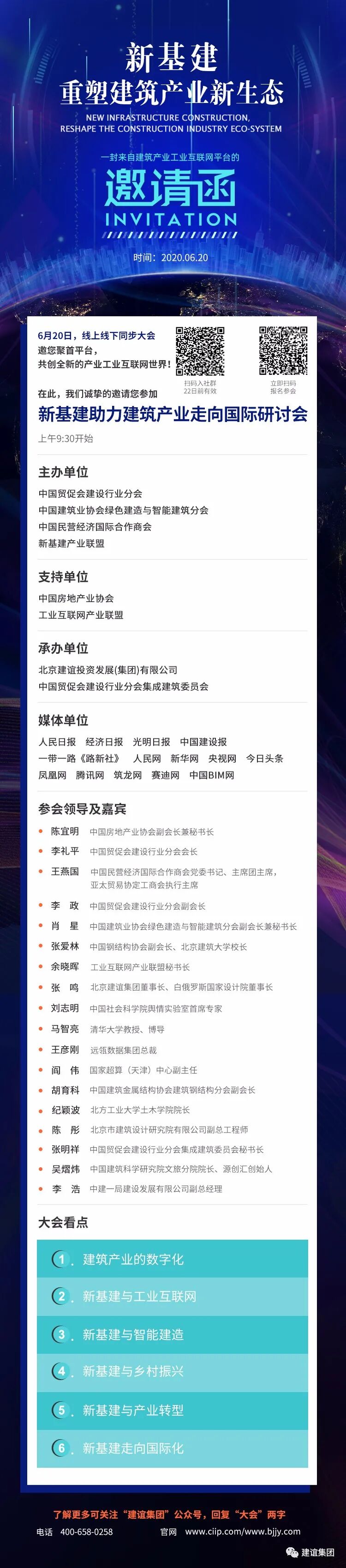 由中国贸促会建设行业分会、中国建筑业协会绿色建造与智能建造分会、中国民营经济国际合作商会、新基建产业联盟联合主办的“新基建助力建筑产业走向国际研讨会·暨建筑产业工业互联网发布会”,将于2020年6月20日上午9时进行线上直播分享。